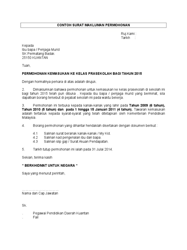 Contoh Surat Makluman Kepada Ibu Bapa Atau Penjaga Pdf